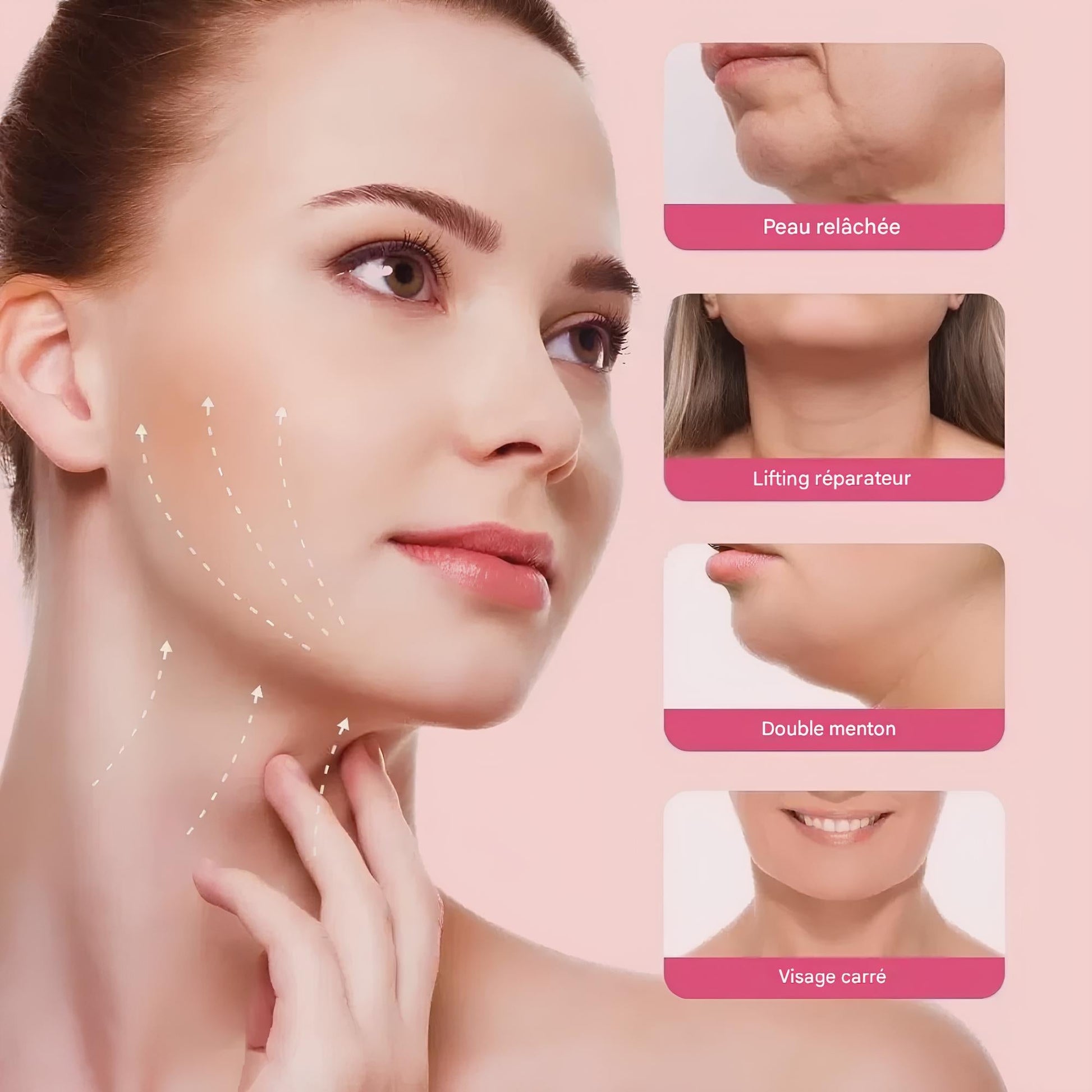 La bande lifte naturellement le menton et les joues en quelques minutes par jour. Sans douleur, sans chirurgie, juste une routine simple pour redéfinir ta ligne du visage à la maison.